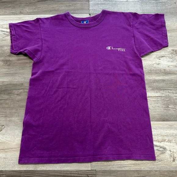 Vintage Champion Purple Mens L Crewneck Plain Blank Brand Logo T-Shirt 90s