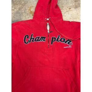 Vintage Champion Reverse Weave Half-Zip Red Hoodie Chain-Stitched Script Logo M
