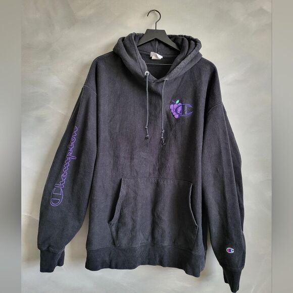 Vintage Champion Reverse Weave Washed Black Grape Emblem Size 3XL