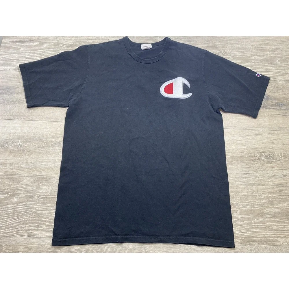 Vintage Champion Shirt Adult Sz 2XL Short Sleeve Big C Logo Embroidered Black