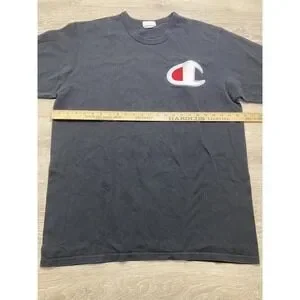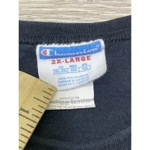 Vintage Champion Shirt Adult Sz 2XL Short Sleeve Big C Logo Embroidered Black. Good preowned condition see photos for details