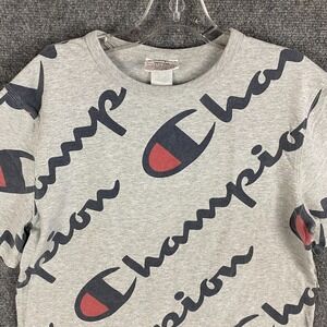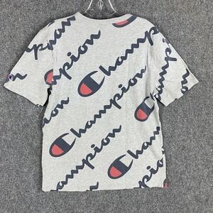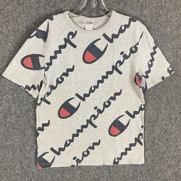 Vintage Champion Shirt Men's Medium Heritage Gray All Over Print Casual Adults