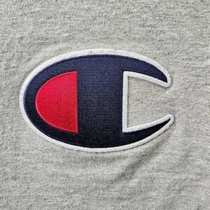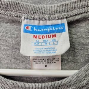 Vintage Champion Shirt Mens Medium Grey Big Logo Embroidered Patch Short Sleeve
