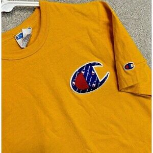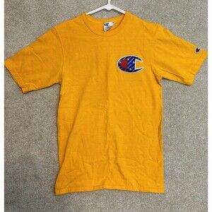 Vintage Champion Shirt Size Small Yellow Embroidered Big Blue "C" Short Sleeve