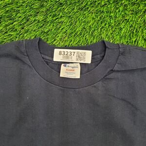 Vintage Champion Shirt XL 23x28 Navy-Blue Script Spellout Logo USA Made Retro Streetwear