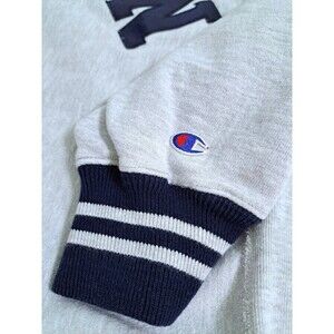 Vintage Champion Size XL Reverse Weave Avalon Varsity Gray Navy Blue 90s Sweater