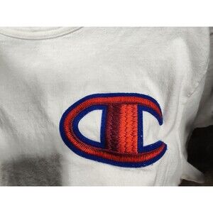 Vintage Champion Stitched T-Shirt White Adult Medium Embroidered Logo Fast Ship