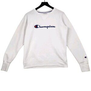 Vintage Champion Sweatshirt Size Medium White Signature Logo Spell Out Athletic