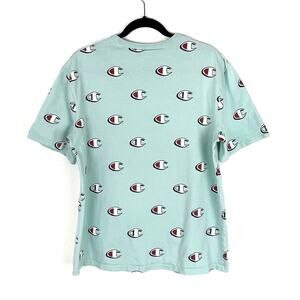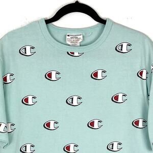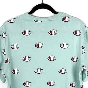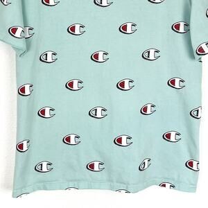 Vintage Champion T Shirt Short Sleeve 100% Cotton Large Logo Unisex XL Aqua