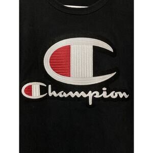 Vintage Champion T Shirt Spell Out Script XL Black Short Sleeve