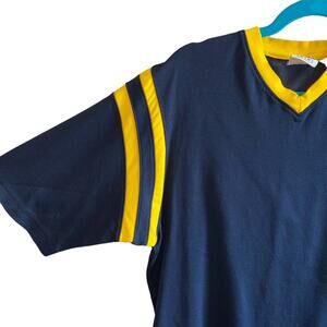 Vintage Champion V-Neck T-Shirt Medium Navy Yellow Athletic Sports Streetwear