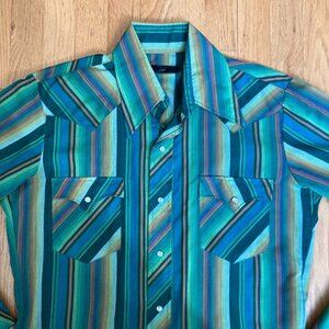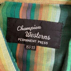 Vintage Champion Westerns Long-Sleeve Shirt Green Striped Pearl Snap Men Size 33