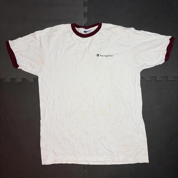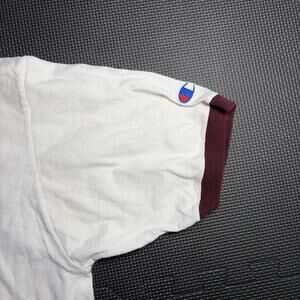 Vintage Champion White Blank T-Shirt Size Large USA 80s 90’s Maroon Sleeve VTG