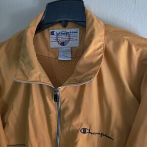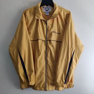 Vintage Champion Windbreaker Jacket Mens L Yellow Navy Lightweight Full Zip Vent