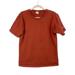 Vintage Champion Women's Rust Brown Ribbed Crew Neck Fit Training T-Shirt Medium