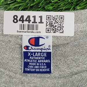 VINTAGE 90S CHAMPION SHIRT, XAVIER ATHLETICS TEE, MUSKETEERS GRAPHIC, ARCH SPELLOUT DESIGN, CROPPED BAGGY FIT, USA MADE SPORTSWEAR, CLASSIC GRAY T-SHIRT, RETRO COLLEGE STREETWEAR, RARE CHAMPION ATHLETIC TEE, XL FIT VINTAGE SHIRT
