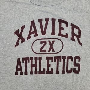 Vintage 90s Champion Xavier Athletics Musketeers Shirt XL 23x27 Cropped Gray Arch Spellout USA