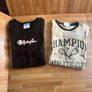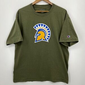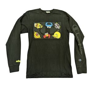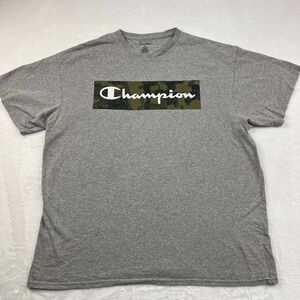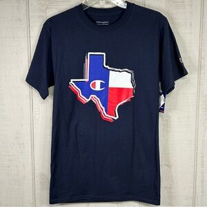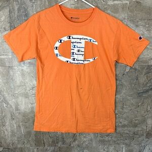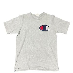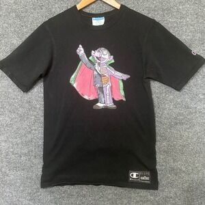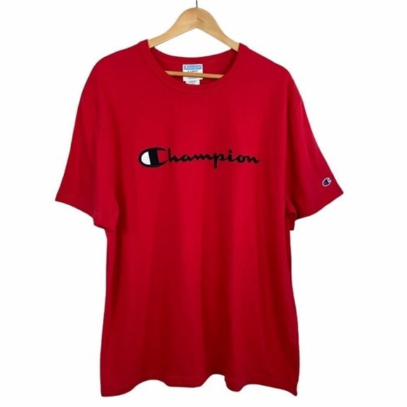 Vintage Champion black bar, crew neck Embroidered patch red t-shirt size 2XL