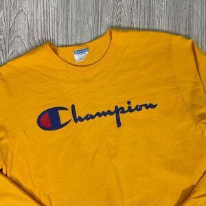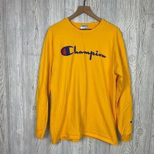 Vintage Champion Men's Size XL Yellow Long Sleeve Classic Logo T-Shirt Crewneck