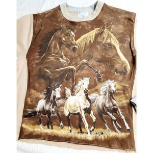 Vintage, champion, horse tshirt repurposed into a sweatshirt #repurposed #upcycled small OOAK #equestrian #reworked #vintage excellent preowned condition