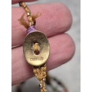 The Vintage Chan Luu Necklace features a disc pendant adorned with semi-precious stones, set in 925 sterling silver. The necklace has a bohemian style and natural tones, making it a perfect accessory for a female who appreciates vintage jewelry. The necklace's length is 20 inches, with a hook closure for easy wear. The Chan Luu brand is known for its unique and eclectic designs, making this necklace a standout piece for those who love Bohemian fashion.