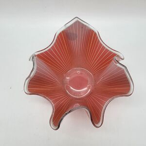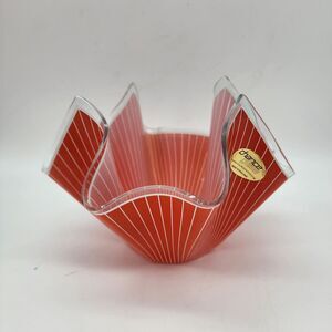 Vintage Chance Brothers Handkerchief Vase Orange White Cordon Pinstripe MCM 60s