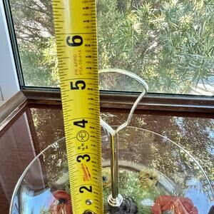 Measuring approximately 6.5 inches in diameter and standing 5 inches tall, this tiered glass dish adds elegance to any tabletop, shelf, or dresser. A beautiful example of English glassware, it’s ideal for collectors or fans of retro floral designs.