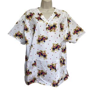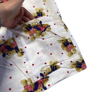 Vintage 4th Of July Teddy Bear Scrub Top Pockets Side Vents Sz L