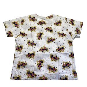 Vintage Chandio Teddy Bear 4th of July Memorial Day Stars Stripes Scrub Top Sz L