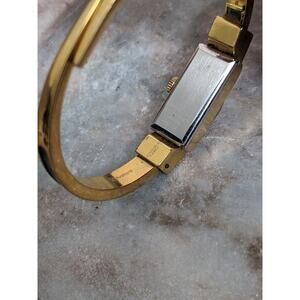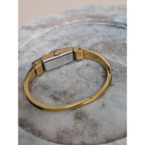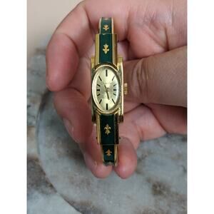 Vintage Chandler Gold Tone Manual Bangle Watch Deep Green Enamel Gold Accents