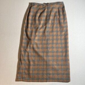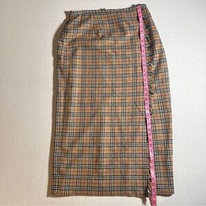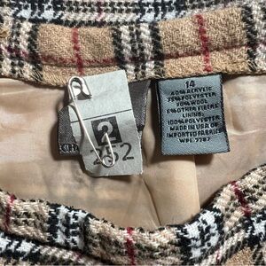 Vintage Chandler Hill Wool Blend Plaid Faux Wrap Midi Skirt- Tan/Beige, Size 14