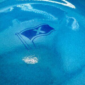 • Features a vibrant turquoise glaze with crisp blue lettering and logo