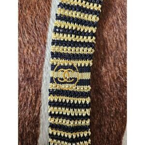 Made in Italy, this tie showcases the exquisite craftsmanship and attention to detail that Chanel is renowned for. The knit fabric ensures a smooth, sleek finish, perfect for a sharp, put-together look. Whether you're dressing up for a special occasion or adding a touch of class to your everyday ensemble, this Chanel tie is an essential addition to your accessory collection.