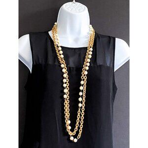 Vintage Chanel 1980s Double-Strand Faux Pearl Necklace 36”–CC Logo Clasp, box