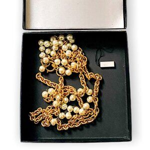 Chanel Vintage Faux Pearl & Gold Chain Necklace – Karl Lagerfeld Era – 1980s with Box & Tag