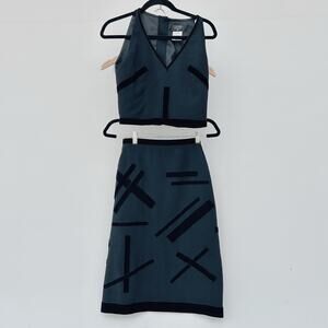 Vintage Chanel AW 1998 Wool Silk Velvet Midi Skirt Crop Tank Top Set 36 Black
