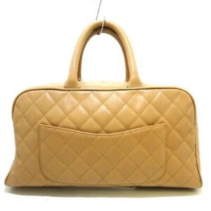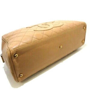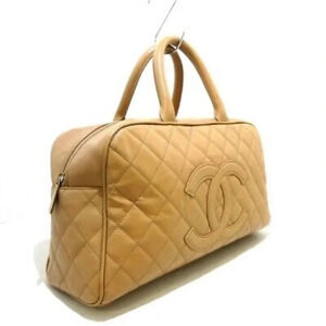 Timeless Chanel early 2000s Bowler bag crafted in beige Caviar leather with signature diamond quilting, finished in gold-tone metal hardware. Caviar leather is durable and water resistant, meant to imitate the look of exotic skin.
