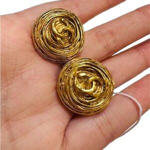 Vintage Chanel Birds Nest Interlocking CC Earrings 1994