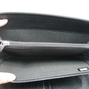 Inside leather is in good condition. It has scratches and a little bit wear along the edges of card lots. Pockets are in good clean condition. Note at its size and the design which is a combination of a wallet and bag. Very spacious, it has large size that can carry a whole Chanel normal wallet.