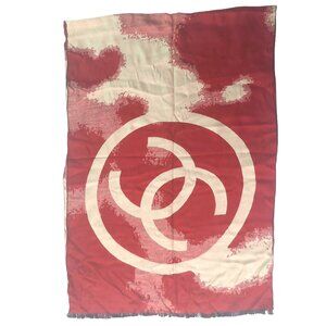 Vintage Chanel Burgundy Red Cream Tie Dye Print Blanket Scarf Scarves Wrap