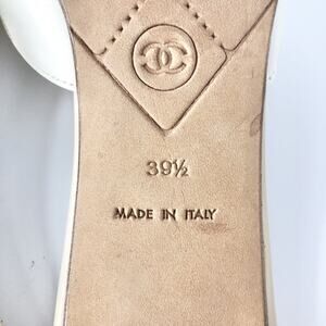 Vintage Chanel CC Logo Bow Cream Tan Pointed Toe Cap Toe Mules Pumps 39.5