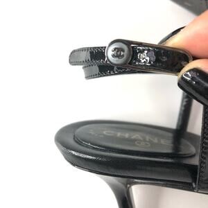 Vintage Chanel CC Logo Patent Cap Toe Pointed Toe Black Pumps 37