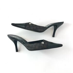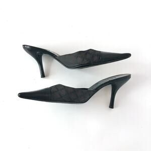 Vintage Chanel CC Logo Print Pointed Toe Mules Pumps 36.5