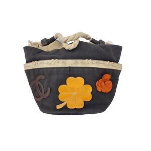 The Chanel Clover Flower Rope Handle Fish Net Hand Bag Tote is a stylish and sophisticated handbag featuring a floral pattern with applique accents. Made from black canvas with a top handle style (rope) this tote is perfect for women who appreciate the CHANEL brand and its signature Camellia collection. The fishnet design adds a touch of luxury to the overall look, making it a versatile accessory for a variety of outfits and occasions. It would be a wonderful addition to a Chanel collector.