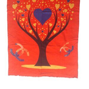 Vintage Chanel Multi-Color Red Tree Hearts Print Blanket Scarf Scarves Wrap