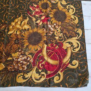Vintage Chanel Paris Silk Scarf Classic Quiet Luxury Old Money Sunflowers