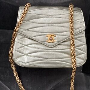 Vintage Chanel champagne metallic Shoulder Bag with Quilted Design