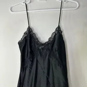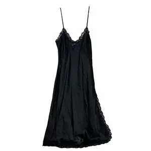 Vintage Chanteause Slip Dress Lingerie Women's Medium Black Lace Side Slit