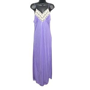 Vintage Chanteause Slip Dress Lingerie Women's Medium Black Lace Side Slit Gown