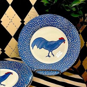 chanticleer dinner plates, blue rooster plates, alice cotterell china, vintage chicken motif, collectible dinnerware, farmhouse kitchen decor, rustic tableware, blue and white plates, country style plates, vintage ceramic plates, rooster kitchen accessories, collectible dinner set
